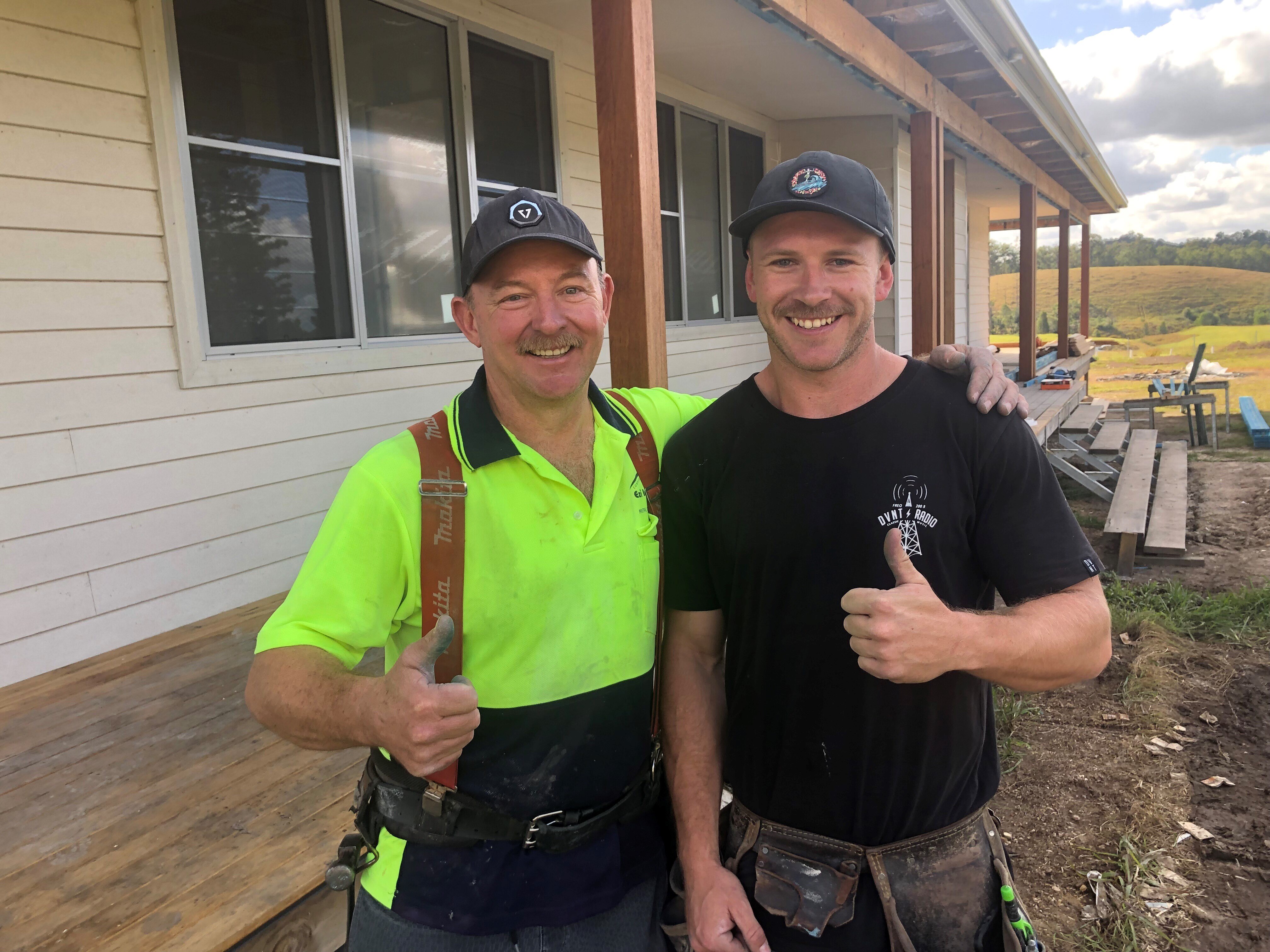 The builders called for the landowners to contact the Queensland Ambulance Service while they ran to check on the pilot.