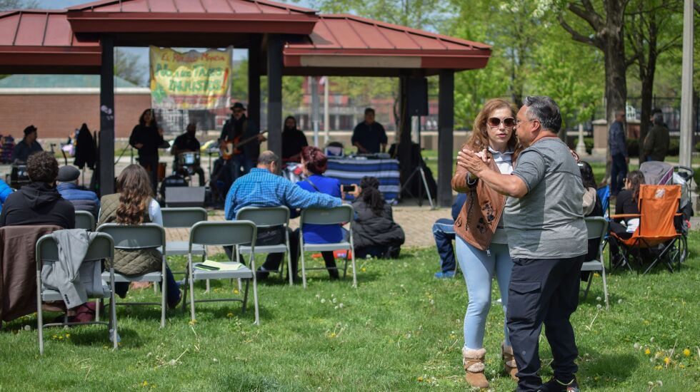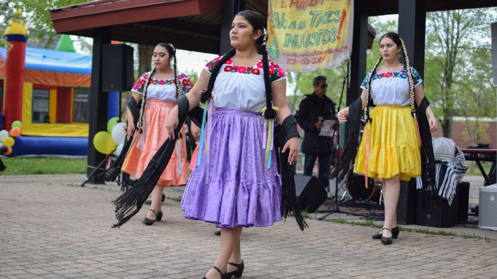 Nearly a hundred people gathered Saturday in Pilsen’s Dvorak Park to celebrate Cinco de Mayo and protest an increase in property taxes that hit the community last year, causing longtime residents to fear they will be driven out.