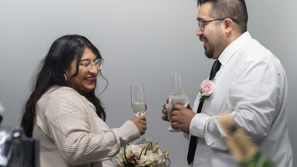 The two shared a toast of sparkling grape juice provided by the clerk’s office. It was all so last-minute they weren’t sure where they’d go for lunch after the ceremony.