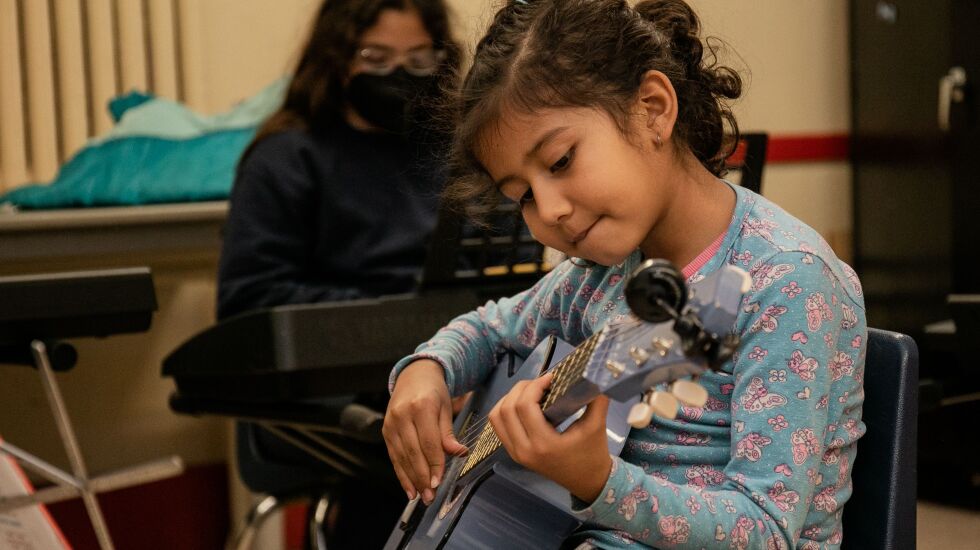 “I like playing music because I get a time to forget about the schoolwork I have,” said Ana, a sixth-grader at James Shields Middle School in Brighton Park.