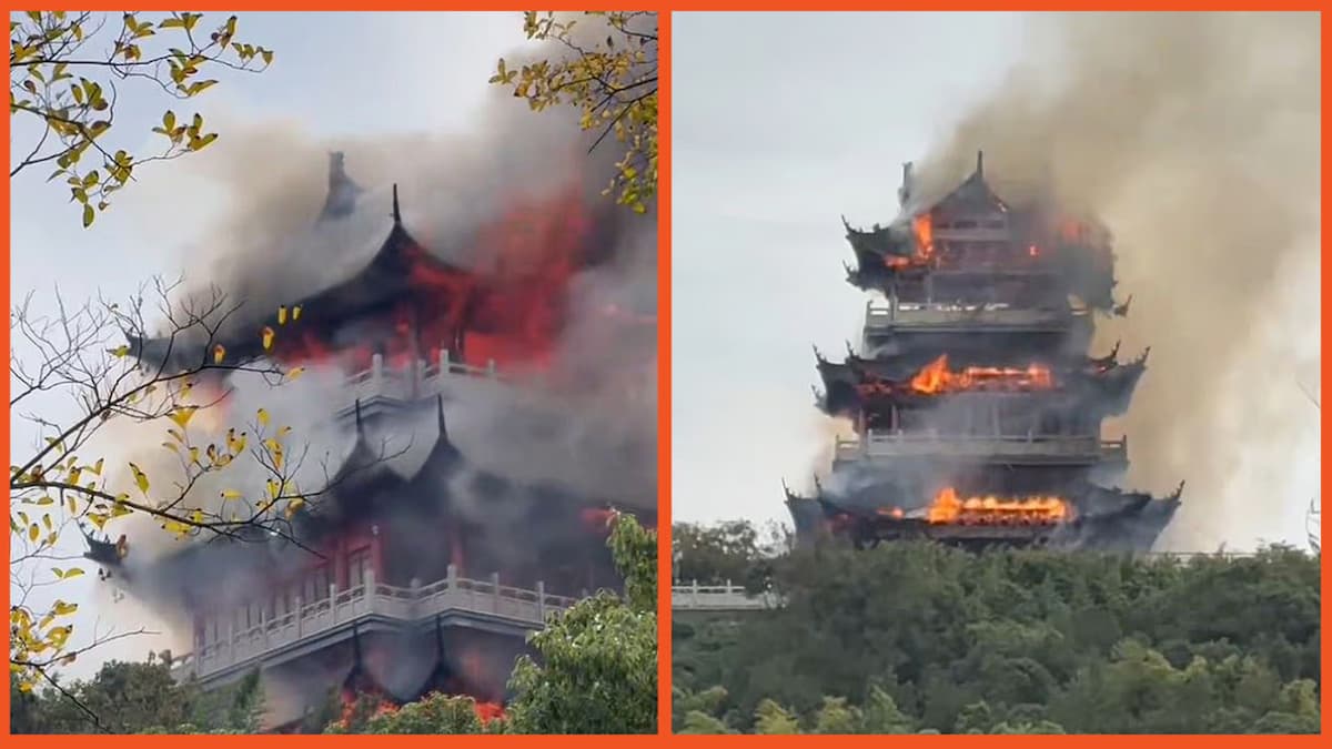 Footage of the disaster at the Wenchang Pavilion on Fenghuang Mountain in Zhangjiagang has already found its way online with netizens branding the unnamed tourist “careless” and “irresponsible.” Authorities have yet to properly assess the damage done to the structure although in the clips online the building is seen engulfed in flames as the wood roof collapses due to the damage.