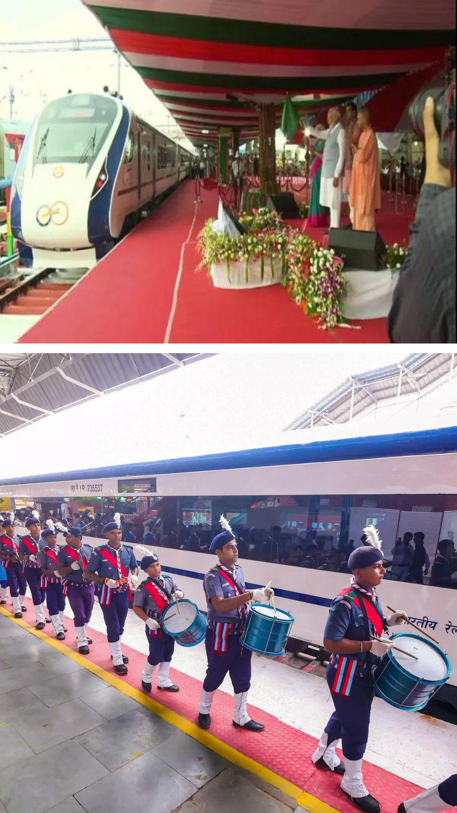 PM Modi also flagged off the North Eastern Railway\'s first semi high-speed Gorakhpur-Lucknow Vande Bharat train and the Jodhpur-Sabarmati Vande Bharat Express.