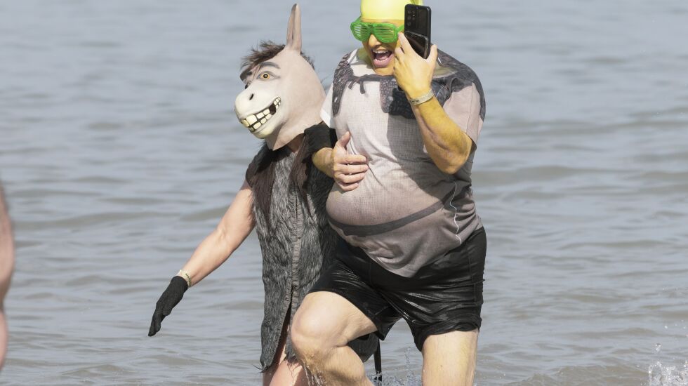 “My feet are freezing! It was cold, but I thought it was going to be a lot worse,” said Beverly resident Tim Delaney, 26, who was dressed as a penguin at his first-ever plunge.