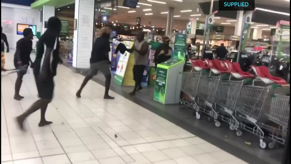 Confronting footage of the incident has emerged on social media and shows several people entering the Darwin Woolworths complex, yelling and screaming.