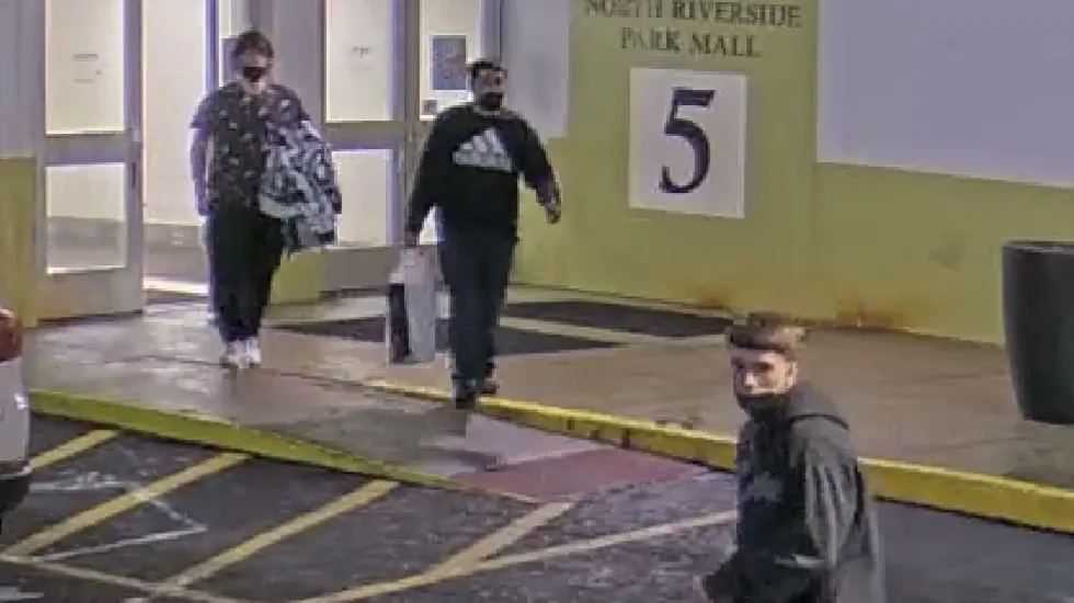 Police also released video of the three later entering a clothing store in the North Riverside Park Mall and walking out with packages.