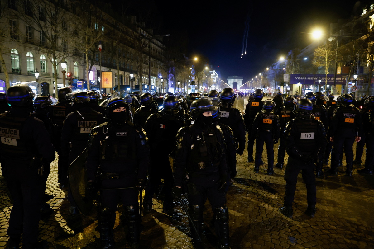 On the Champs Elysees, clouds of tear gas swirled through the terraces of bars and restaurants.