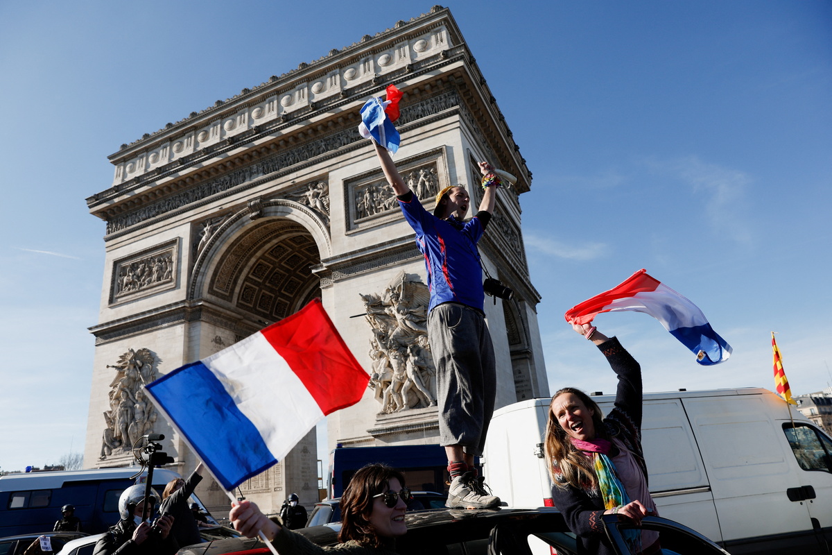 Inspired by horn-blaring "Freedom Convoy" demonstrations in Canada, dozens of vehicles slipped through the police cordon, impeding traffic around the 19th century arch and the top of the boutique-lined Champs Elysees, a magnet for tourists.