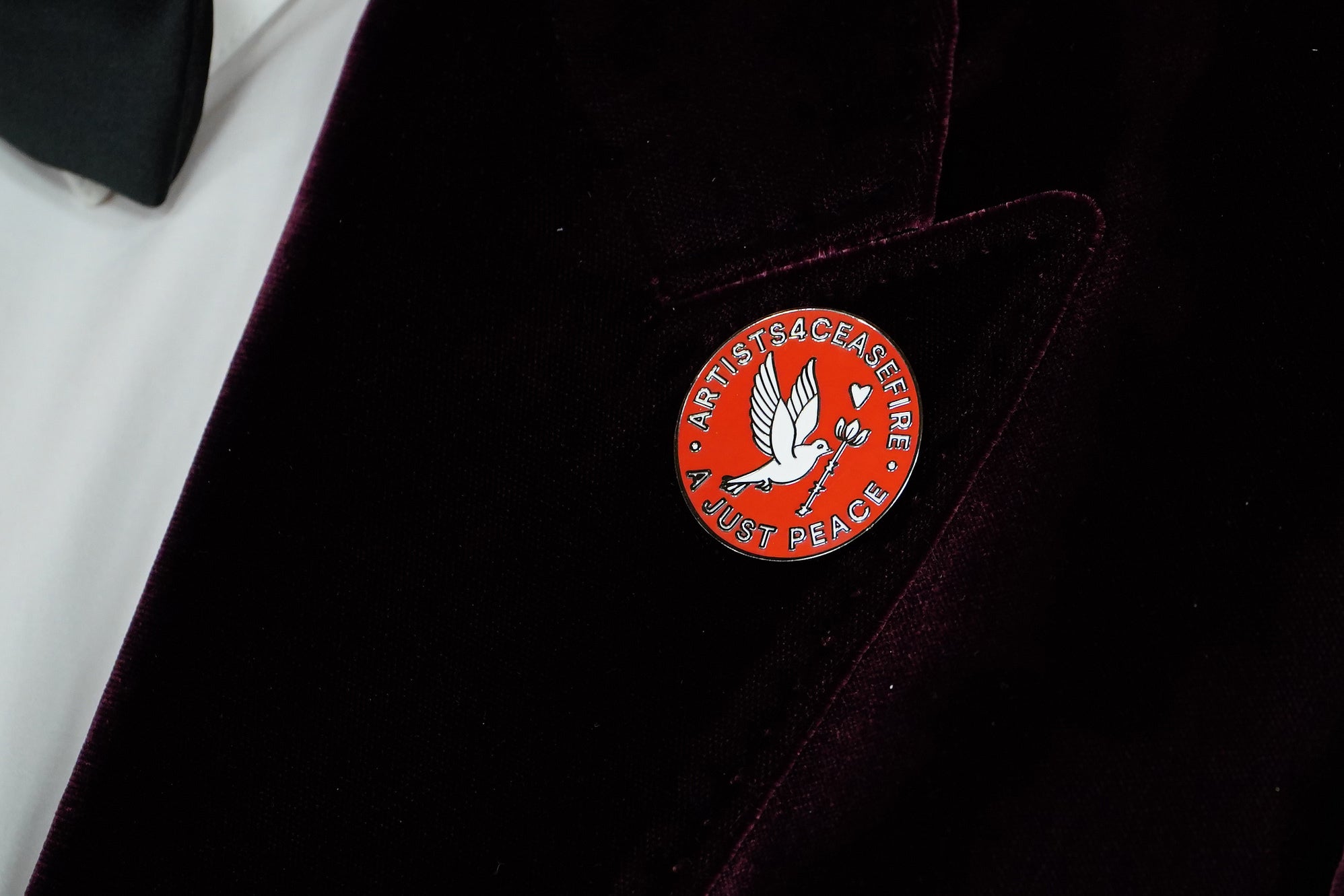 On Sunday, attendees representing “The Voice of Hind Rajab” wore a new red “Artists4Ceasefire” pin. The docudrama, which follows efforts to rescue a Palestinian girl killed in Gaza, was nominated for best international feature film.