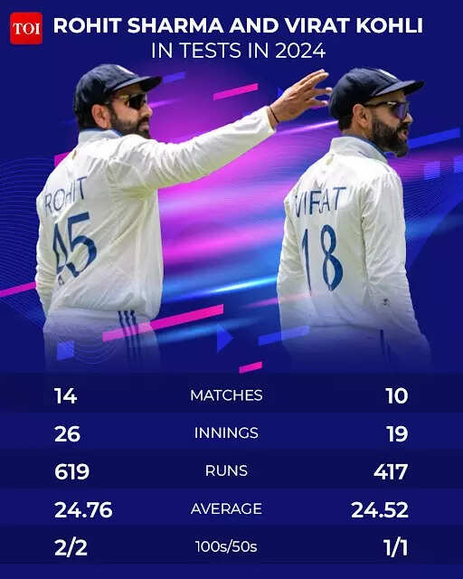 The Indian captain has had a dreadful year in Test cricket. In 14 Tests and 26 innings, Rohit scored 619 runs at an average of 24.76, hitting two centuries and a half-century.