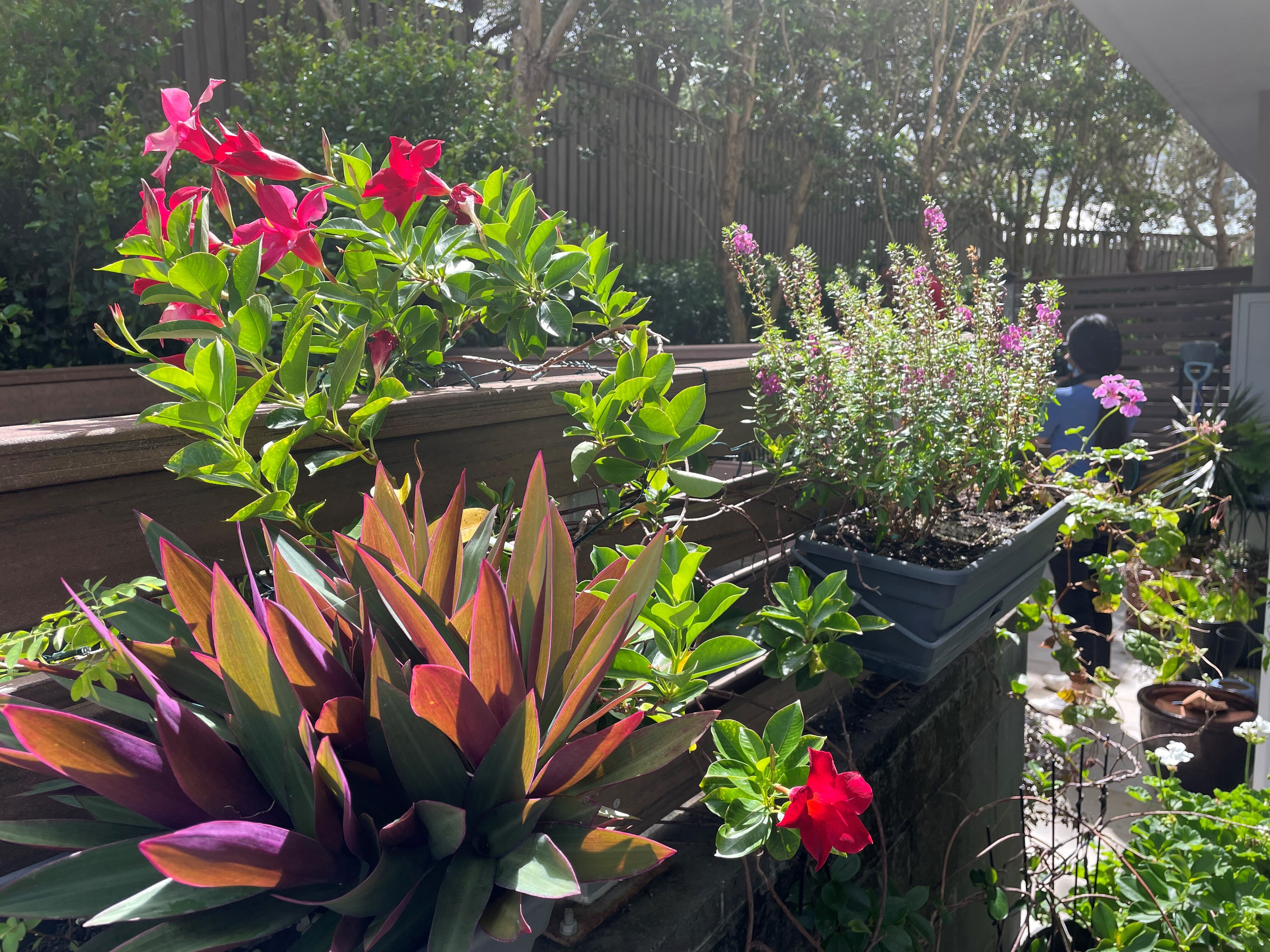Beryl Davidson has always enjoyed spending time on her balcony, which is now full of brightly potted flowers.