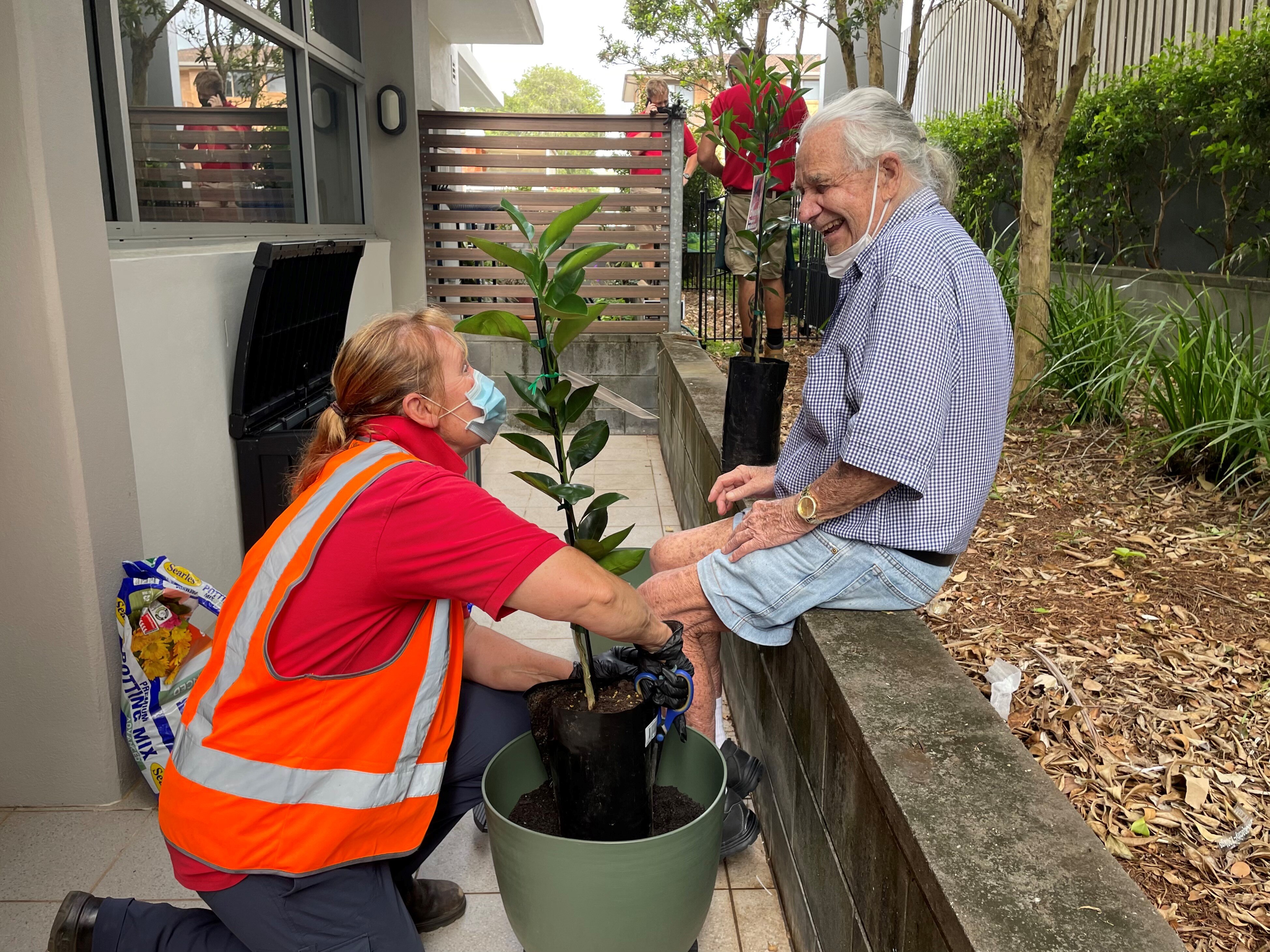 Mr Lynch requested potted citrus trees, which volunteers added to his patio.