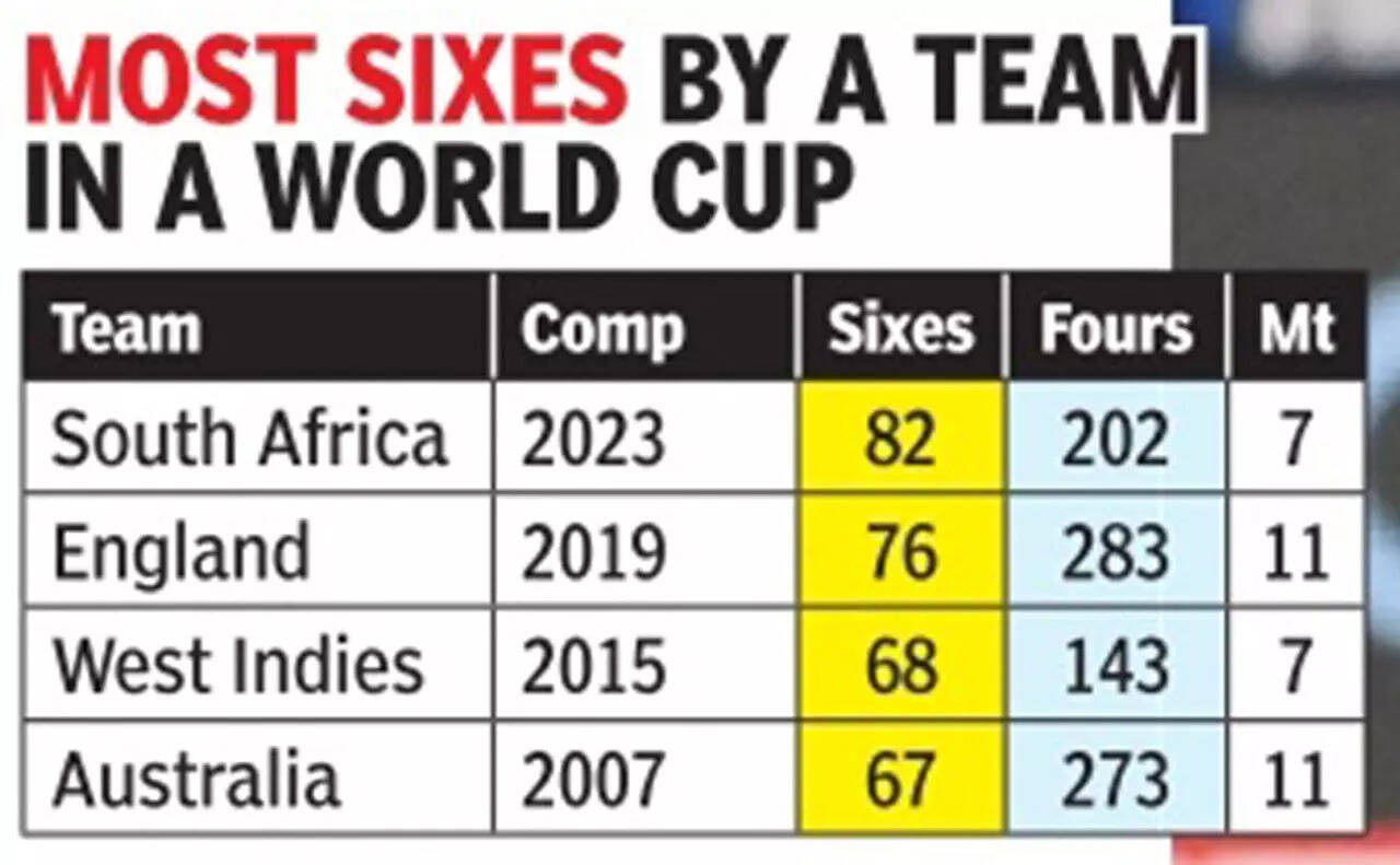 During the match, South Africa unleashed a relentless assault, sending a total of 15 cricket balls soaring over the boundary ropes in a stunning display of batting firepower. With this accomplishment, they surged ahead to amass a total of 82 sixes throughout the tournament, surpassing England's 2019 World Cup tally of 76 sixes.