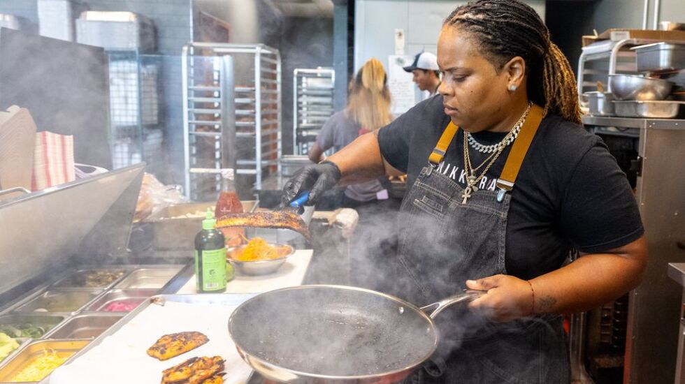 “I roll up my sleeves, I get tunnel vision, and I just pull out all of my strengths and try to embody being the Michael Jordan of food.” — Chef Dominique Leach