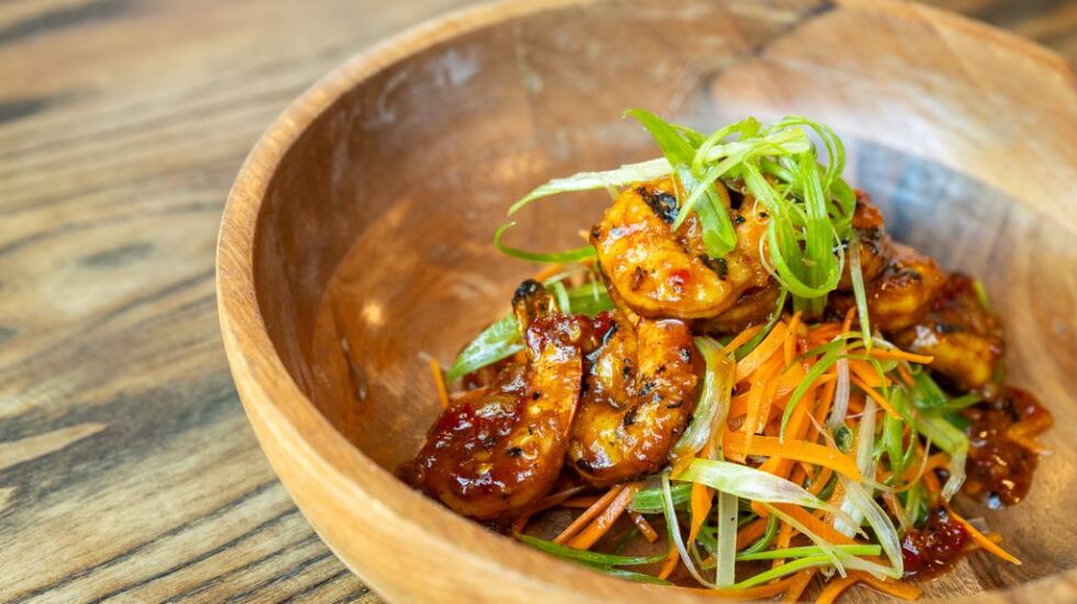 “A perfect char on the shrimp. Lots of spice, and this slaw is really bright and crunchy,” said Williamson on episode 4, of Leach’s jerk-spiced grilled shrimp.