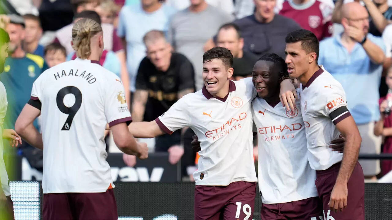 NEW DELHI: Jeremy Doku, Bernardo Silva, and Erling Haaland found the net in the second half as Manchester City staged a comeback from a one-goal deficit to defeat West Ham United 3-1 at the London Stadium on Saturday, reclaiming the top spot in the Premier League table.