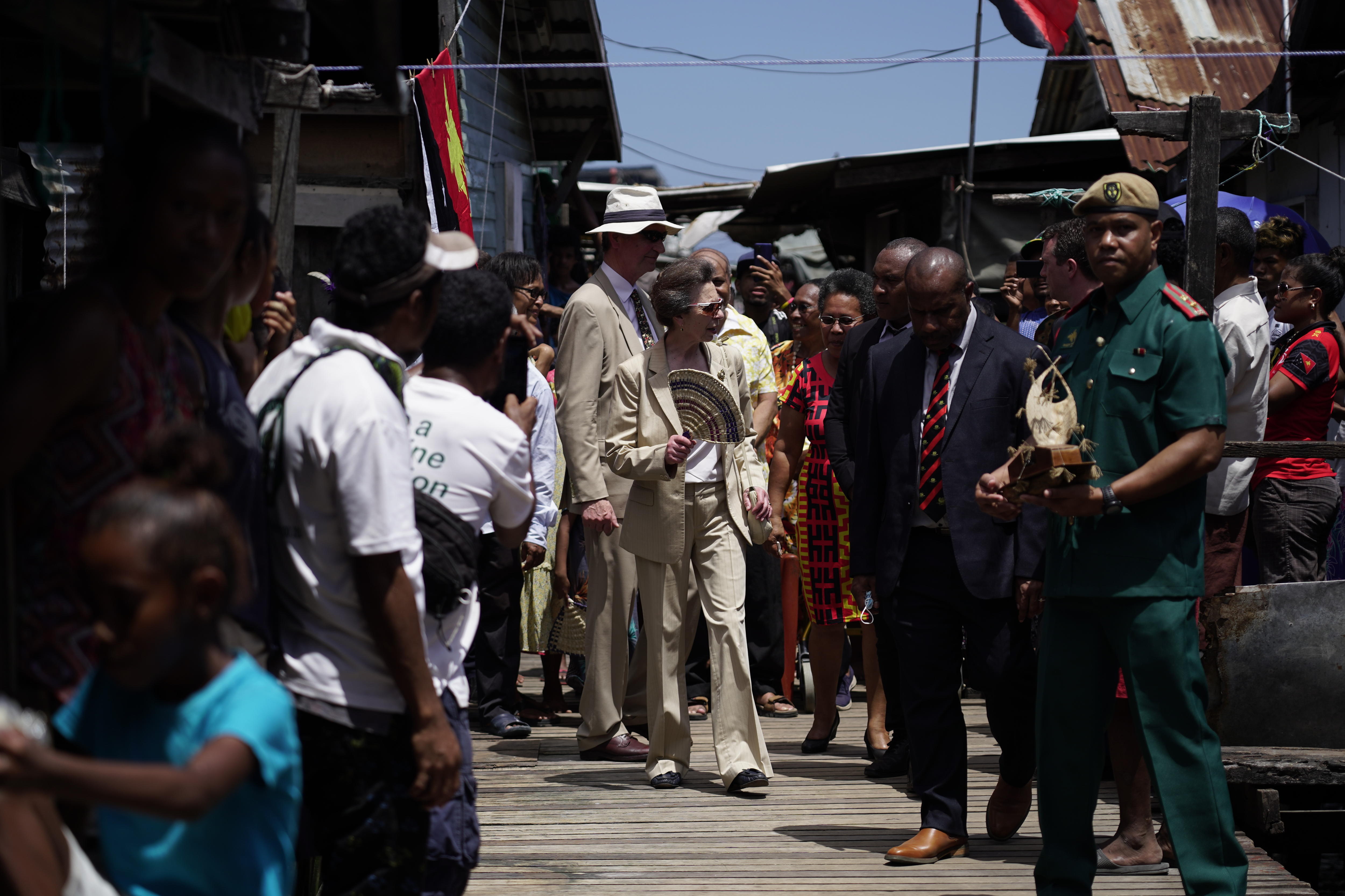 During her time in PNG, Princess Anne visited the village of Hanuabada.