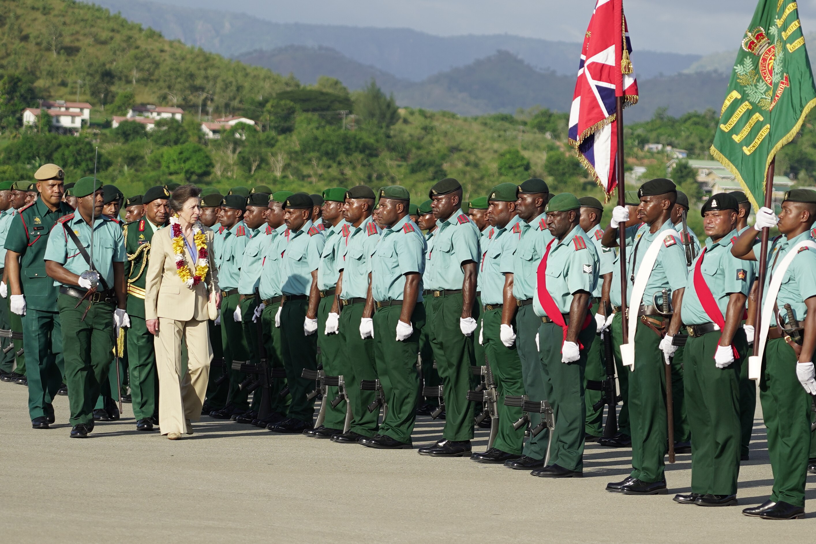 Princess Anne was welcomed with a 21-gun salute and a guard of honour after landing in the country, and Prime Minister James Marape told an evening reception PNG was "truly, truly grateful" she was visiting.