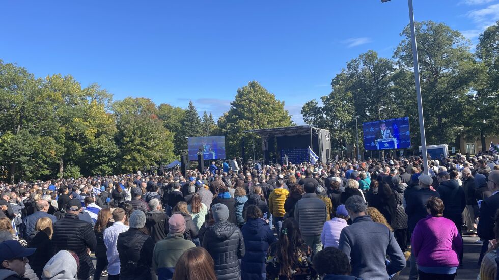The Democratic governor, who is Jewish, acknowledged that there are “peace-loving Palestinians, and we must honor them,” but he called Hamas an “Iranian-backed army of murderers” at a Jewish United Fund solidarity event in the parking lot of the North Shore Congregation Israel.
