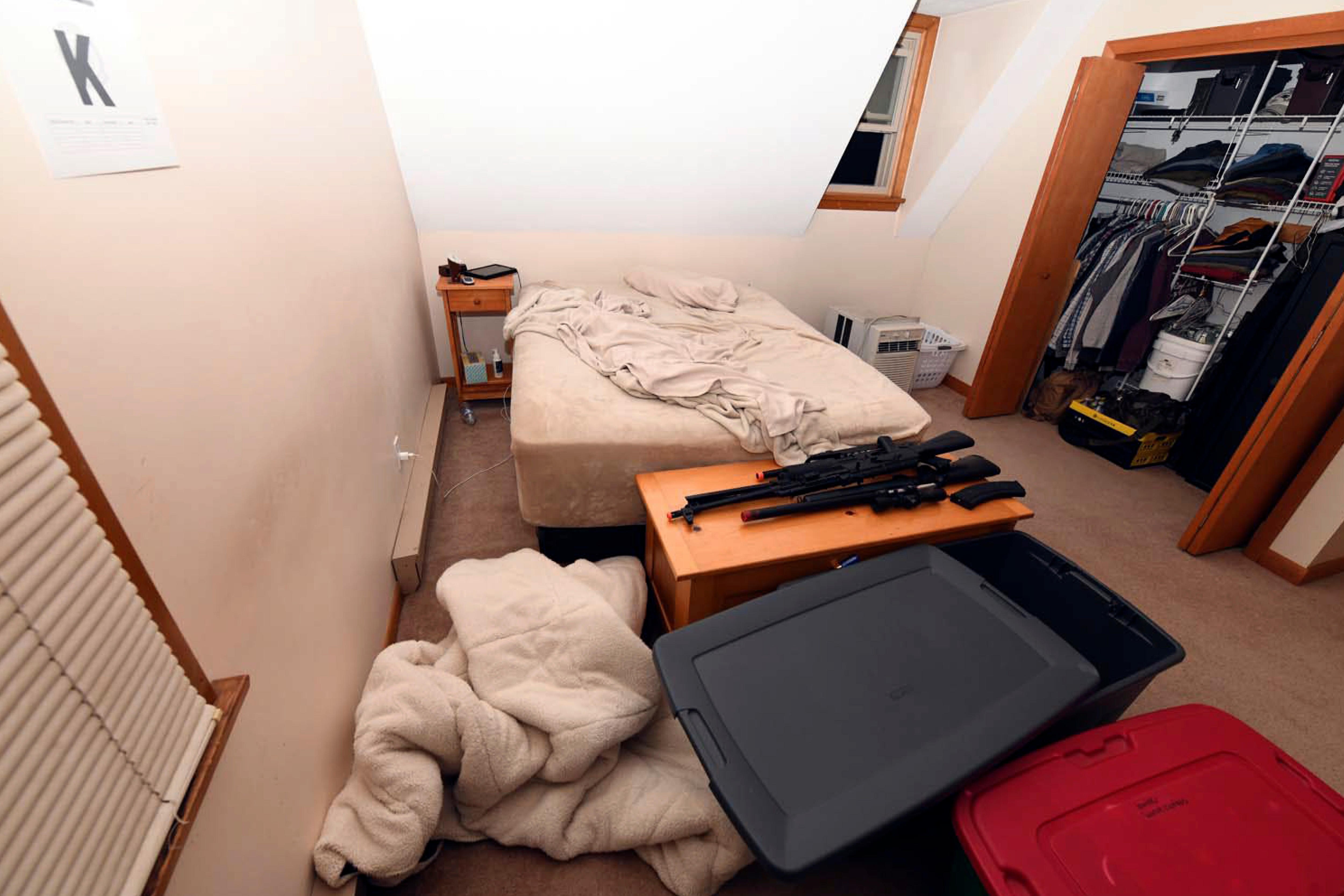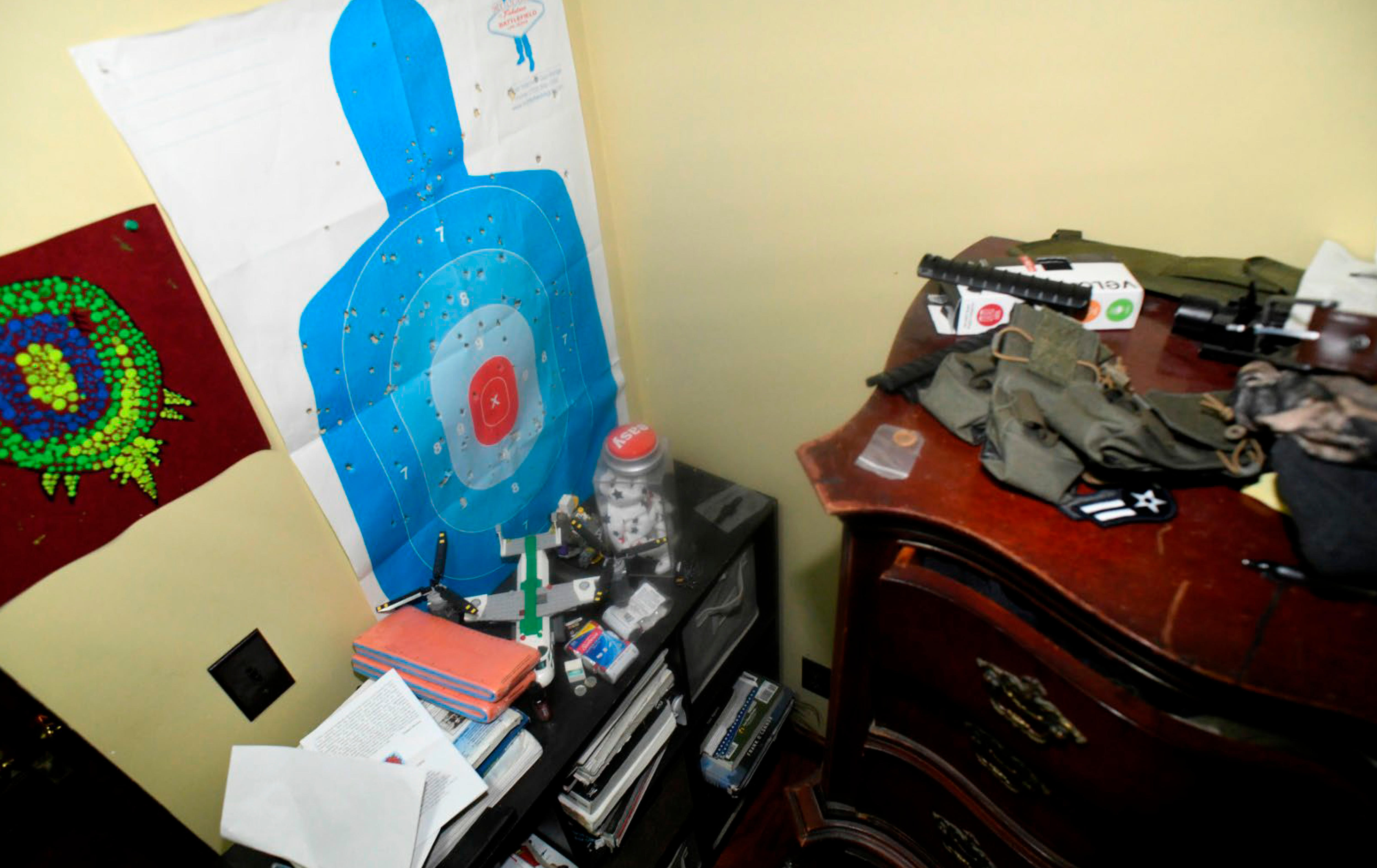 Ammunition and tactical pouches were found on his dresser, they said.