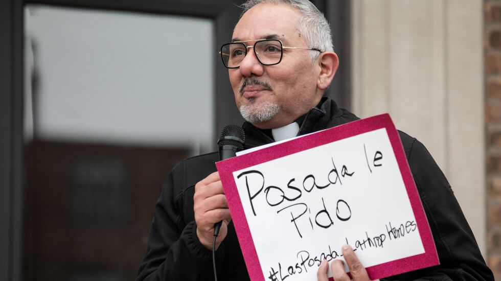 The act was part of Las Posadas, a 400-year-old Christian tradition of a days-long prayer that recreates the story of Mary and Joseph’s search for lodging before Jesus was born. The annual protests at Lathrop Homes started in 2013.