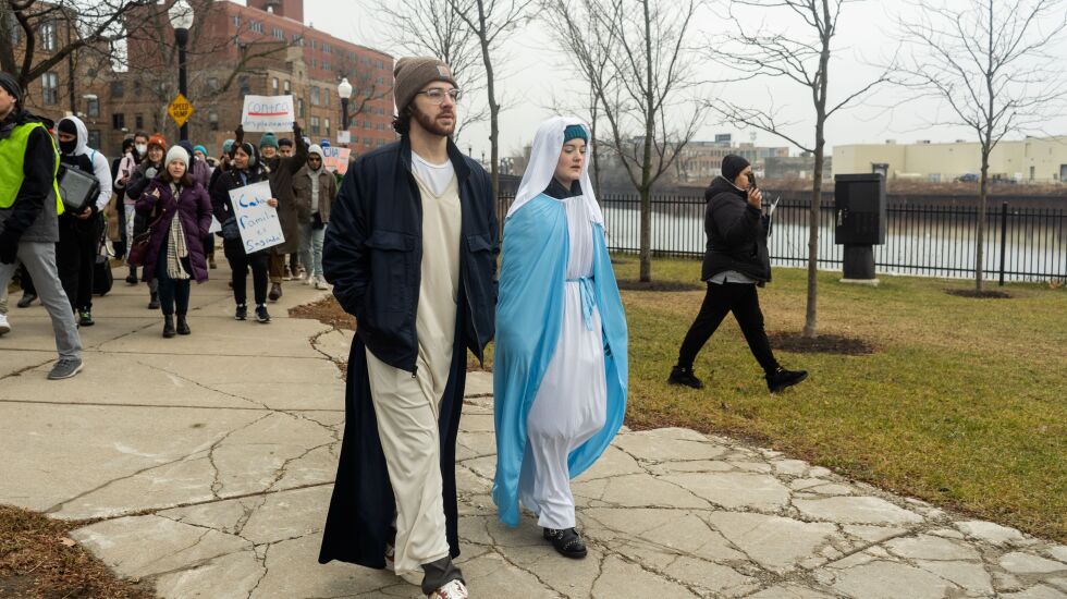 This year’s march had more than 100 attendees following dramatists performing scripted acts between the biblical Joseph and Mary and a Chicago Housing Authority official.