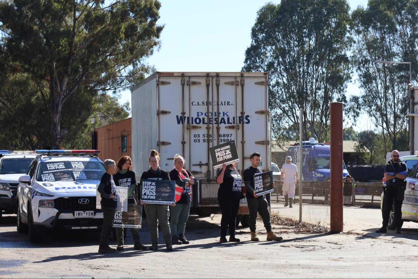 "We chained ourselves onto equipment, some of us, including myself, inside the gas chamber, which is used to stun pigs prior to slaughter," Mr Delforce said.