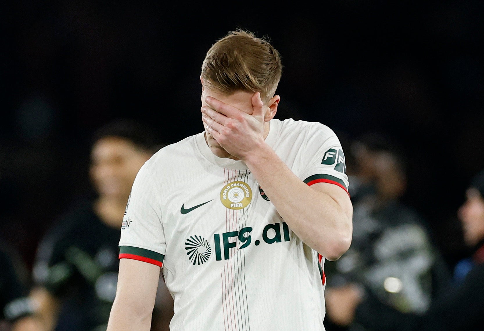 The visitors had twice recovered from a goal down and looked like surviving an intriguing match with a draw when, in the 74th minute, Jorgensen’s pass was cut out easily by Bradley Barcola, substitute Khvicha Kvaratskhelia squared it and Vitinha chipped the stranded goalkeeper.
