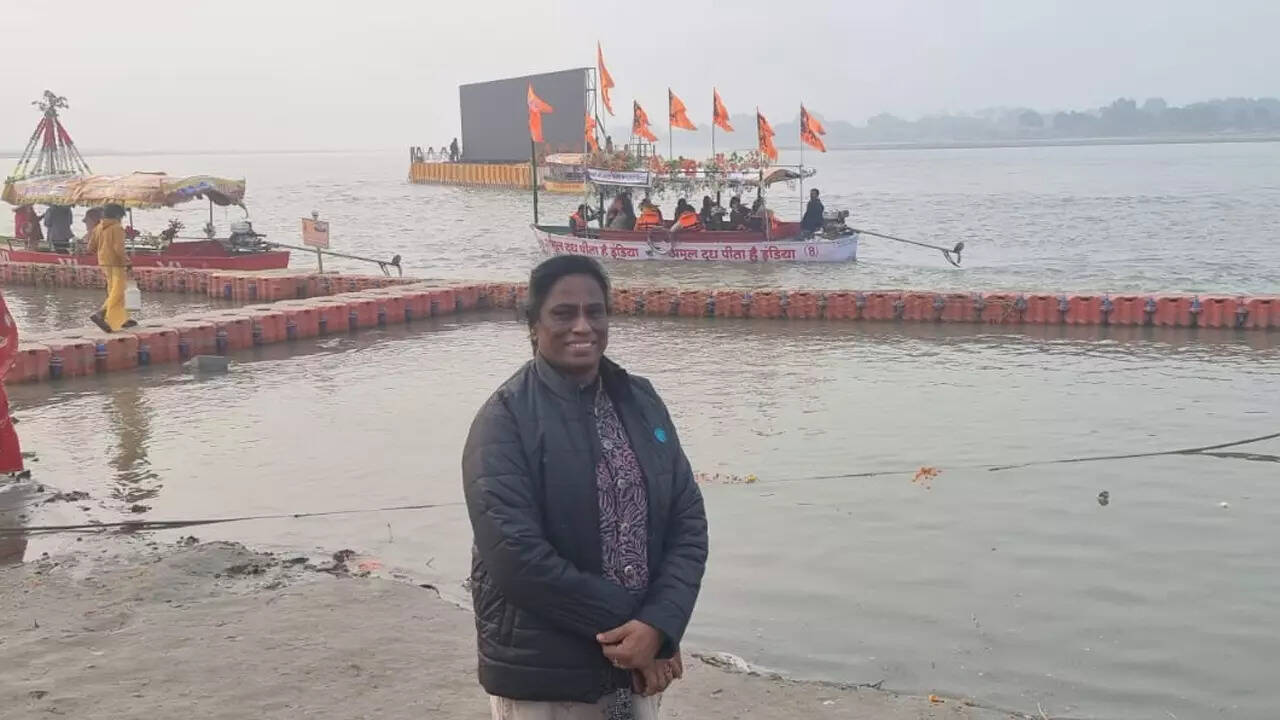 NEW DELHI: Indian Olympic Association (IOA) president PT Usha visited the ghats on the banks of the Sarayu River in Ayodhya on Monday ahead of the 'Pran Pratishtha' ceremony of Ram Lalla.