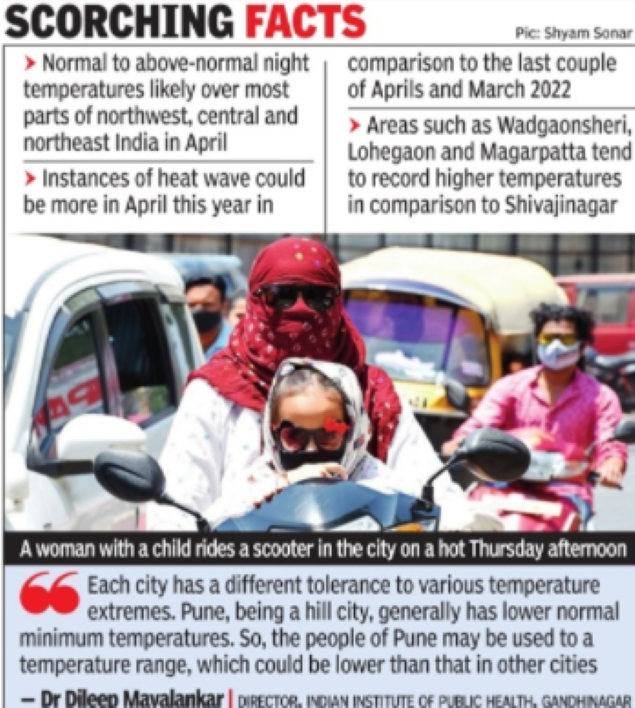 The average March night temperature at the location this year was 17.9ºC, highest since 2011, the India Meteorological Department (IMD) data revealed. Though these are just Shivajinagar’s records, day and night temperatures were much higher at other locations, such as Lohegaon, Chinchwad and Magarpatta, in Pune in March this year.