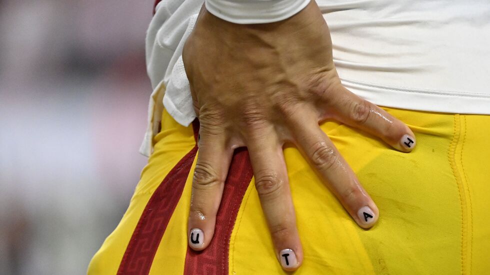 Williams paints his fingernails before every game, and some of the designs are more eye-catching than others. Before the 2022 Pac-12 championship game against Utah, the right-hander painted “F-U-*-*” (without the asterisks) across the nails on his throwing hand and “U-T-A-H” across the nails on the other. The Trojans went into that game 11-1 but got smoked 47-24. As indiscretions go, this was kind of a bad one.