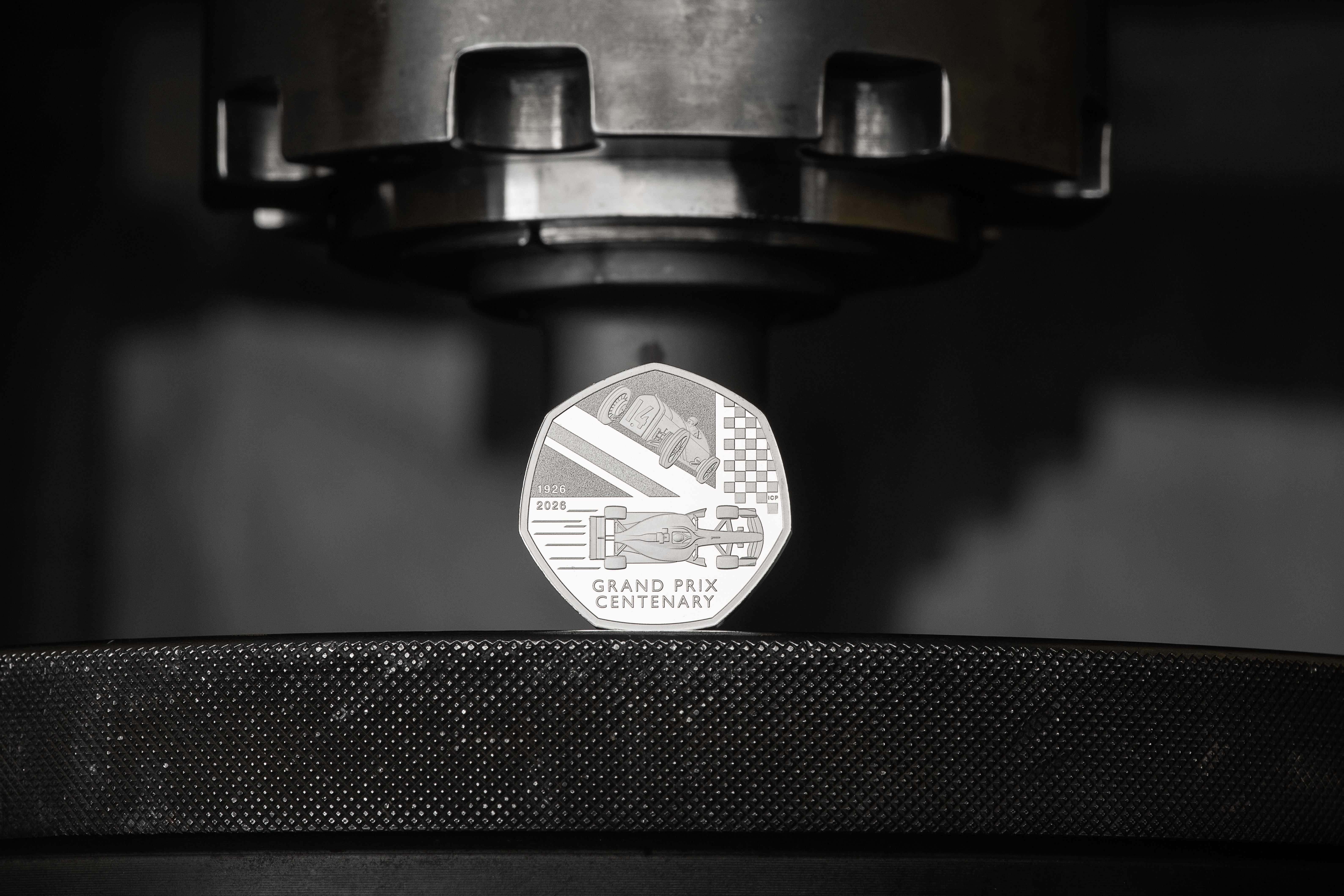 The design of the coin shows how the vehicles used at the British Grand Prix have evolved over the time, featuring a historic racing car that was used in the earlier races alongside a 2026 Formula 1 car.