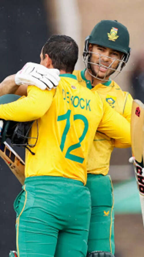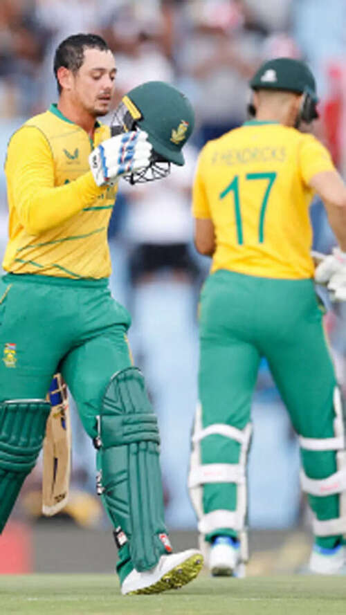 De Kock took 43 balls to reach his century but departed straight after to end a 152-run opening partnership with Reeza Hendricks, who made 68 off 28 balls.