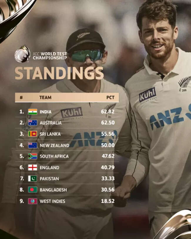 NEW DELHI: The ICC World Test Championship standings are becoming increasingly competitive, with only a 15% gap separating the top two teams, India and Australia.