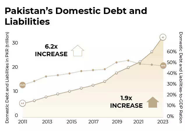 The Tabadlab report, authored by Zeeshan Salahuddin and Ammar Habib Khan, reveals that Pakistan's external and domestic debt has surged dramatically since 2011, with external debt and liabilities almost doubling to $125 billion and domestic debt increasing sixfold. Interest payments now consume a record share of the GDP, underscoring the severity of the debt burden.