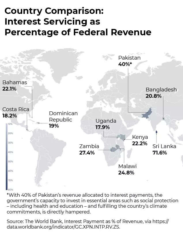 Since 2011, Pakistan's external debt has nearly doubled, while its domestic debt has increased sixfold.For FY-2024, Pakistan faces an estimated debt maturity of USD 49.5 billion, with 30% as interest payments, excluding bilateral or IMF loans.The majority of debt accumulation has supported a consumption-driven and import-heavy economy, lacking investment in productive sectors or industry.Pakistan's debt profile is considered alarming due to unsustainable borrowing and spending patterns.The growing population intensifies the need for increased funding in social protection, health, education, and strategies for climate change adaptation and the green transition.The intertwined challenges of climate vulnerability and debt in Pakistan present an opportunity for simultaneous mitigation and synergy."Pakistan's debt is a formidable, existential, and pertinent challenge, that requires immediate and strategic interventions. Debt repayments are at a historic high, deprioritising the needs of a growing population, such as social protection, education, health, and crucially, climate change," the report said.