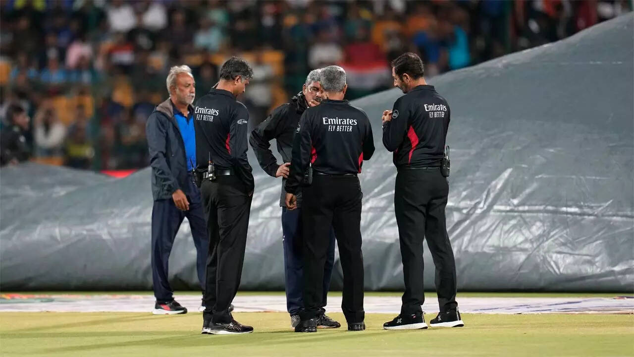 BENGALURU: A sharp spell of shower delayed the proceedings of the series-deciding fifth T20 International between India and South Africa here on Sunday.