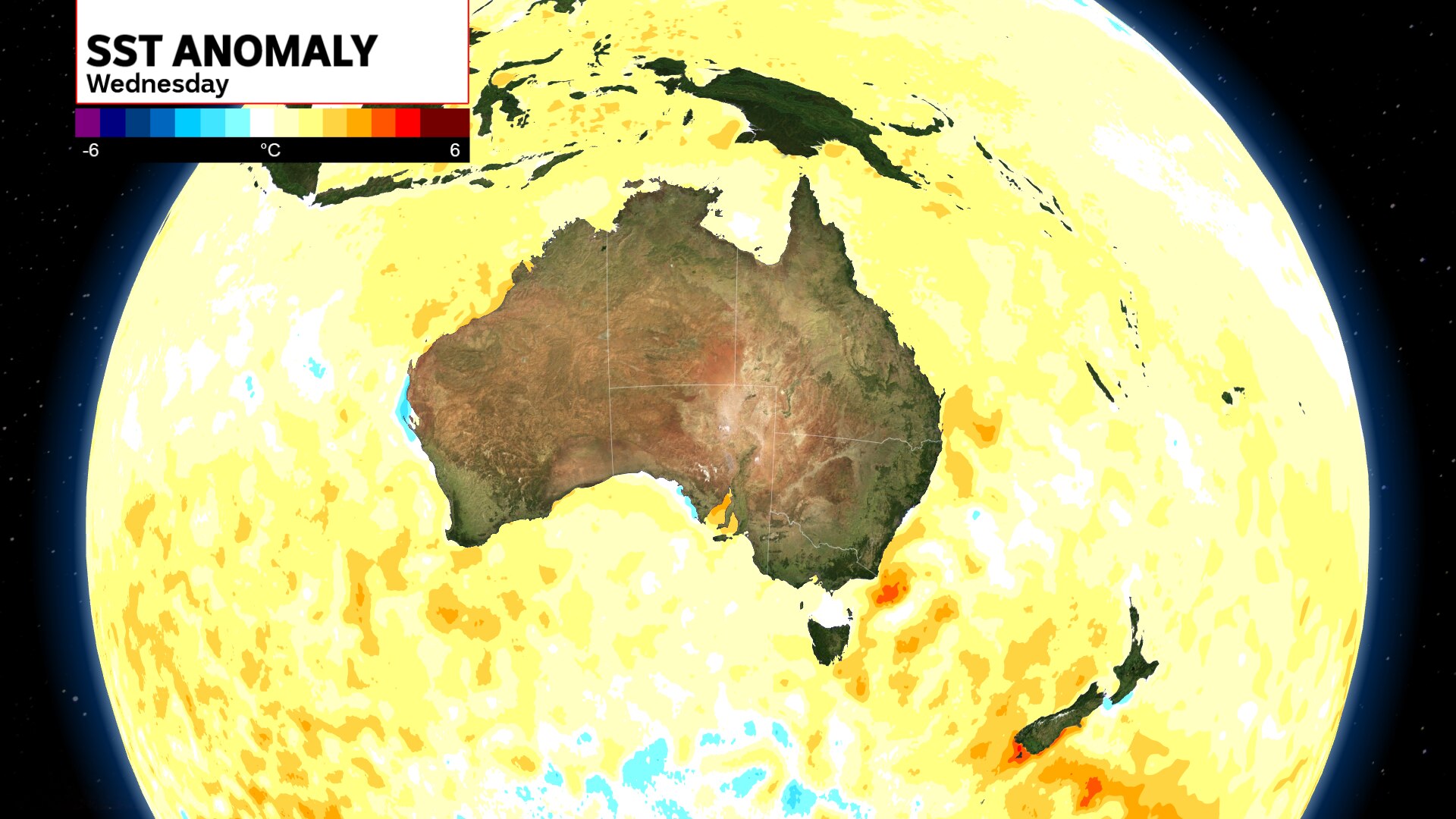 Oceans around Australia are currently warmer than normal which is helping to increase rainfall.  (ABC News)