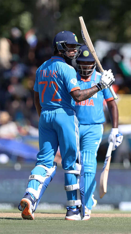<p>Tilak Varma (52) scored his maiden half-century in his fourth ODI. </p>Reuters