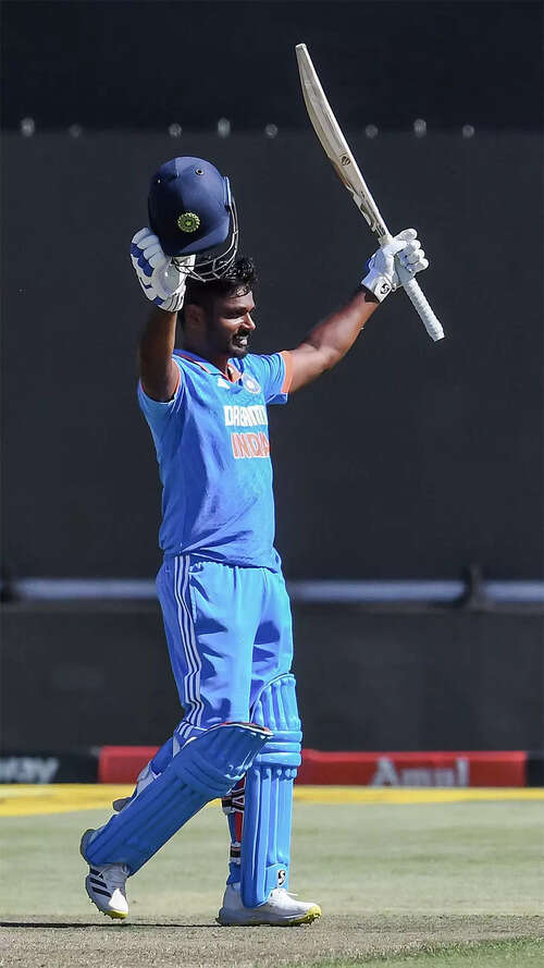 <p>Sanju Samson (108) scored his first hundred in ODIs. His previous best was an 86* vs South Africa in Lucknow on October 6, 2022. </p>AFP