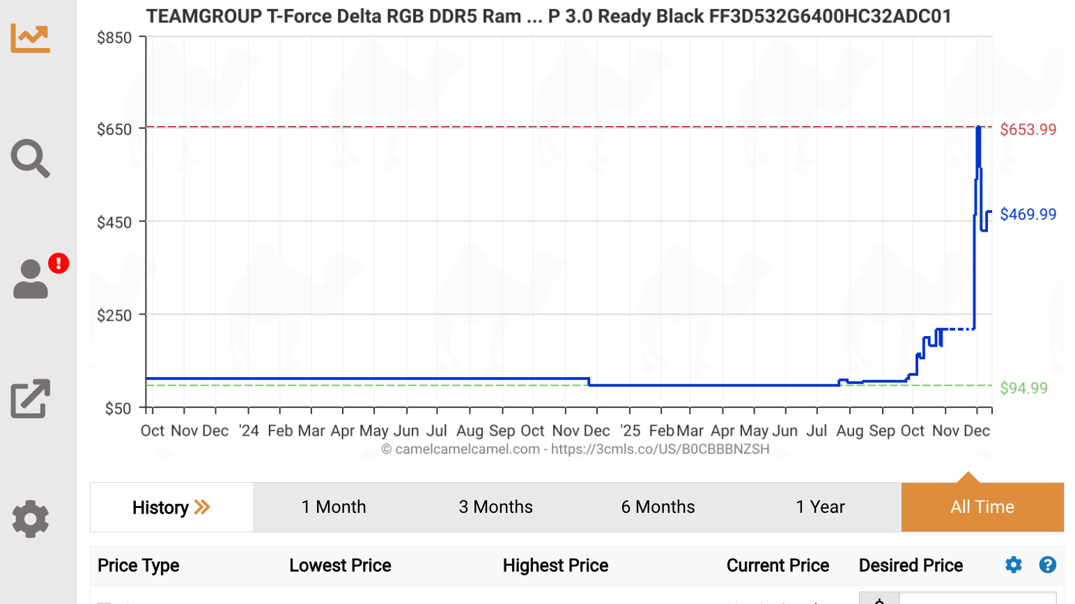 That said, there's still some hope. The 32GB T-Force Delta has had a small reduction recently, dropping from a whopping $653 down to $469. Of course, this is still pricey, considering it was around $100 just a month ago, but at the very least, it's good to see a drop rather than another sharp rise.