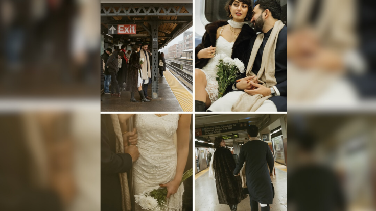 The images, captured by photographer Kara McCurdy, show the couple travelling by subway on a rainy February morning, bouquet in hand, before exchanging vows in a simple courthouse ceremony.