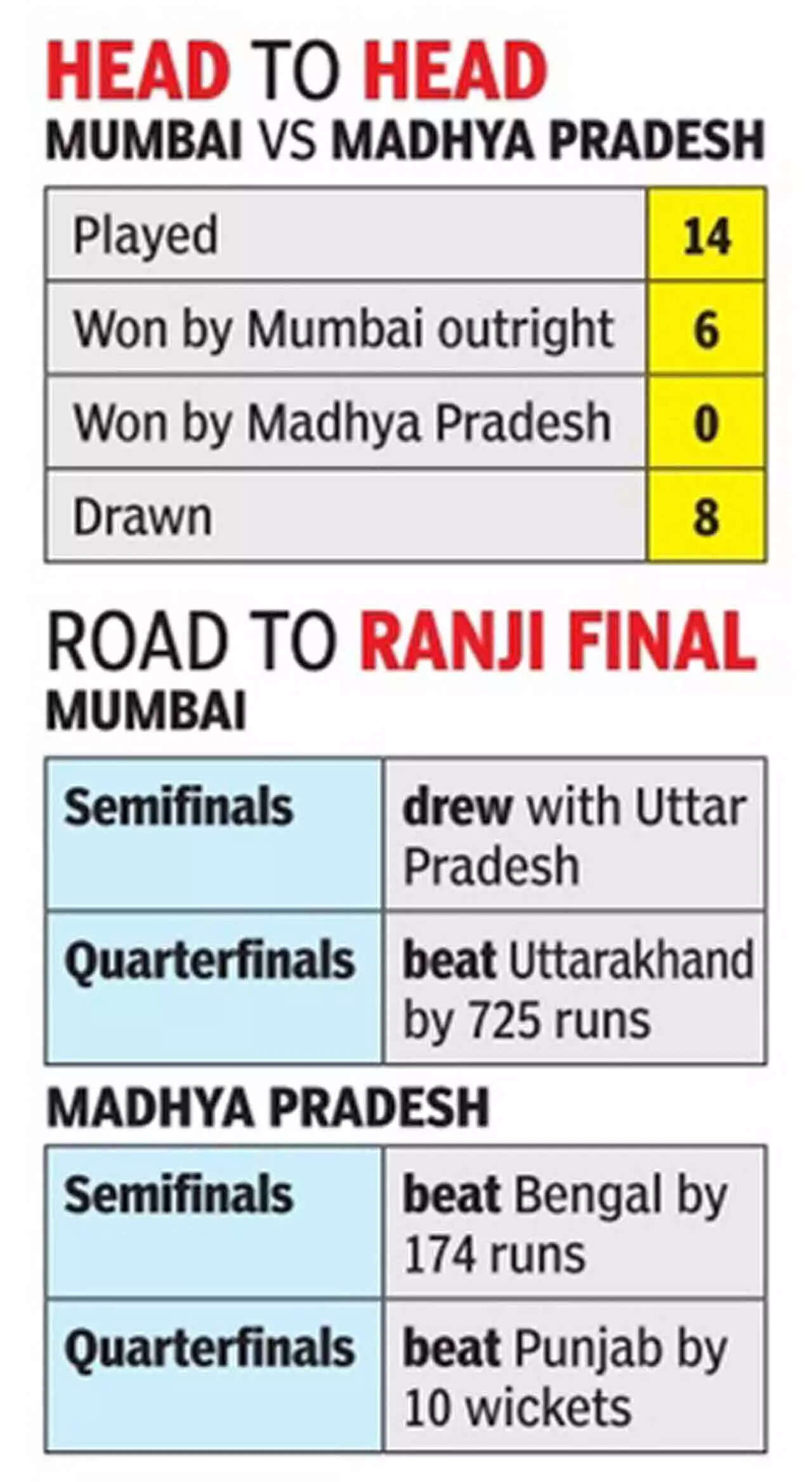Mumbai will start favourites but MP have had a remarkable season and are unlikely to be meek opposition. They have exhibited a fearless brand of cricket.