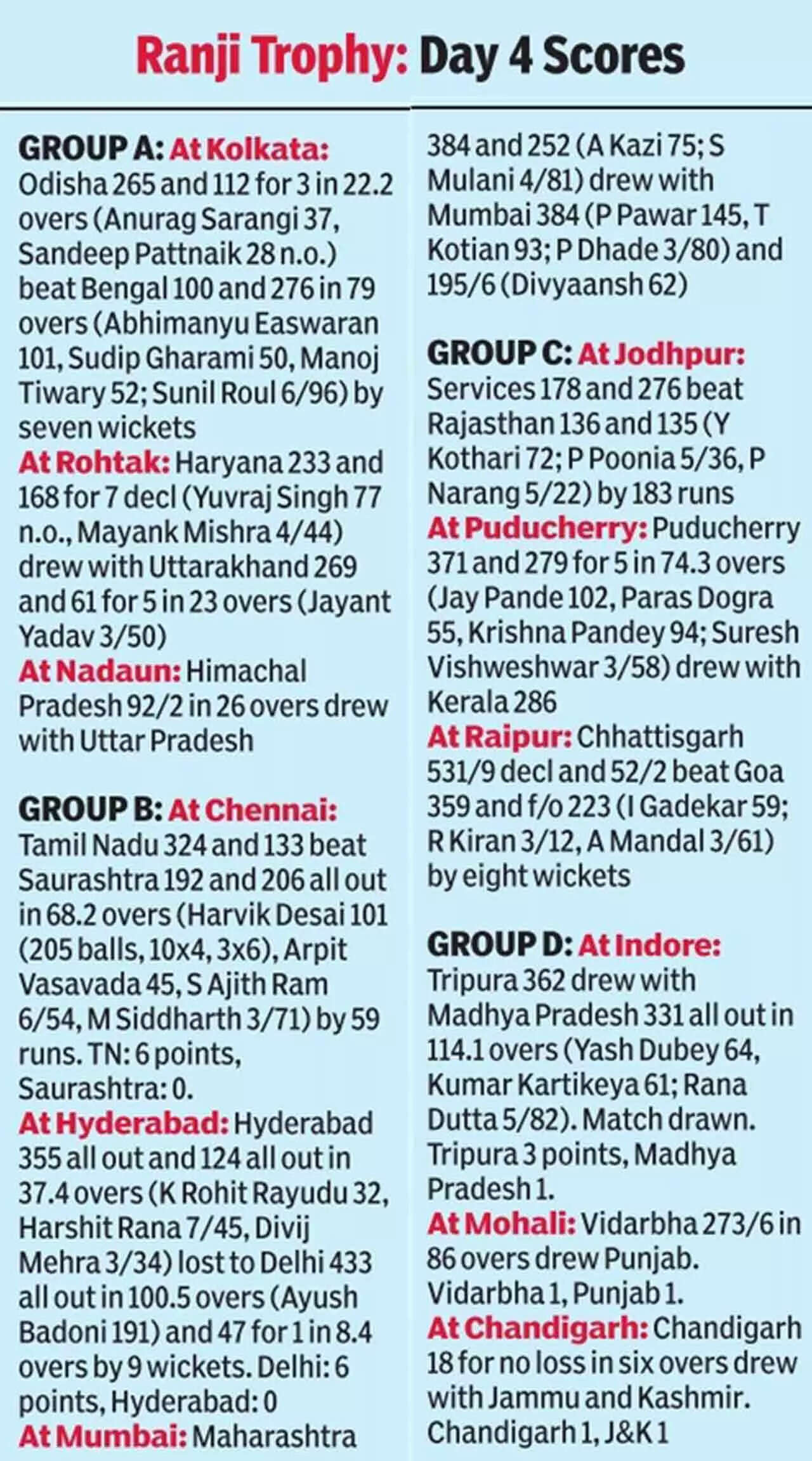 "If you play out a session, you can save a match in four-day games but if you are made to slog for three more sessions, it will give them a better opportunity to develop as Test players. How to survive sessions, how to bowl with discipline, all these factors can be taken care of. Quarterfinals onwards, all games are five-day games anyway. It can be done in the league stage too," Rahane added.