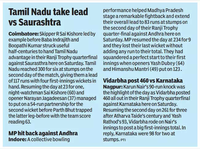 For almost a day and a session, Musheer’s marathon knock (203 not out, 357b, 18x4), and a superb support act by ‘keeper-bat Hardik Tamore (57, 248b, 3x4), put Mumbai on top of Baroda with their mammoth 443-ball 181-run stand for the sixth wicket. However, on Day 2, the visitors fought back through their left-arm spinners, who took all the 10 wickets for them as they restricted Mumbai to 384 in the first innings.