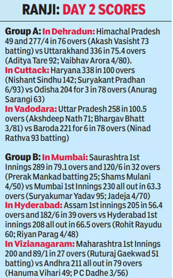 MUMBAI: It’s on a razor’s edge, this Elite Group B Ranji Trophy match between Mumbai and Saurashtra at the MCA’s ground in BKC. At the halfway stage of this intriguing contest, it’s difficult to predict the winner.