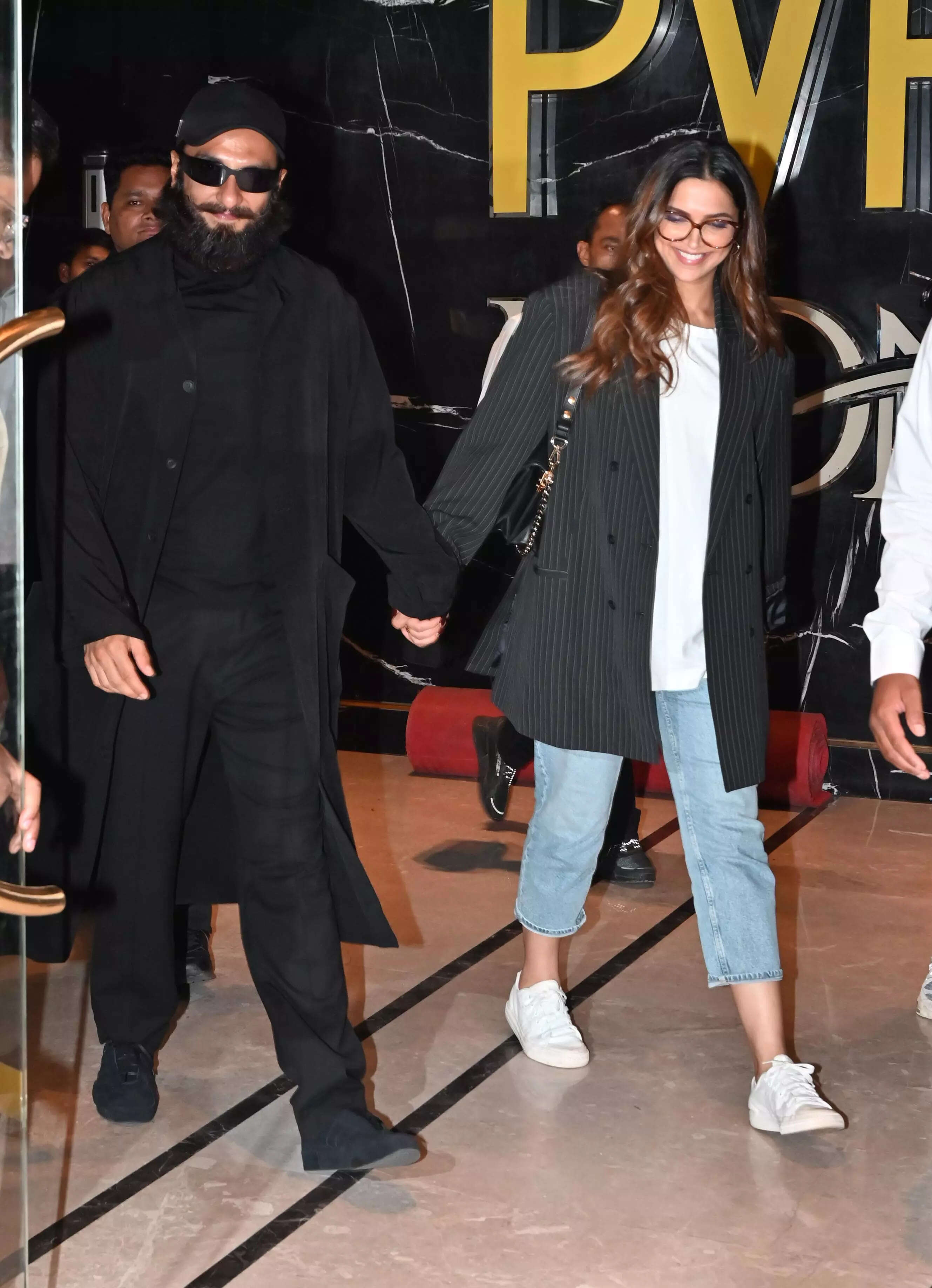 Almost a week after the release of the film, Ranveer and Deepika headed out for a movie date at a local theatre in the city. Twinning and winning shades of black, the couple was all smiles as they headed in for the screening, looking giddy with excitement.