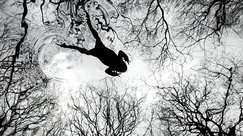 This year’s top prize was awarded to a striking black-and-white image of a toad gliding across a crystal clear pond overlooked by sparse treetops.