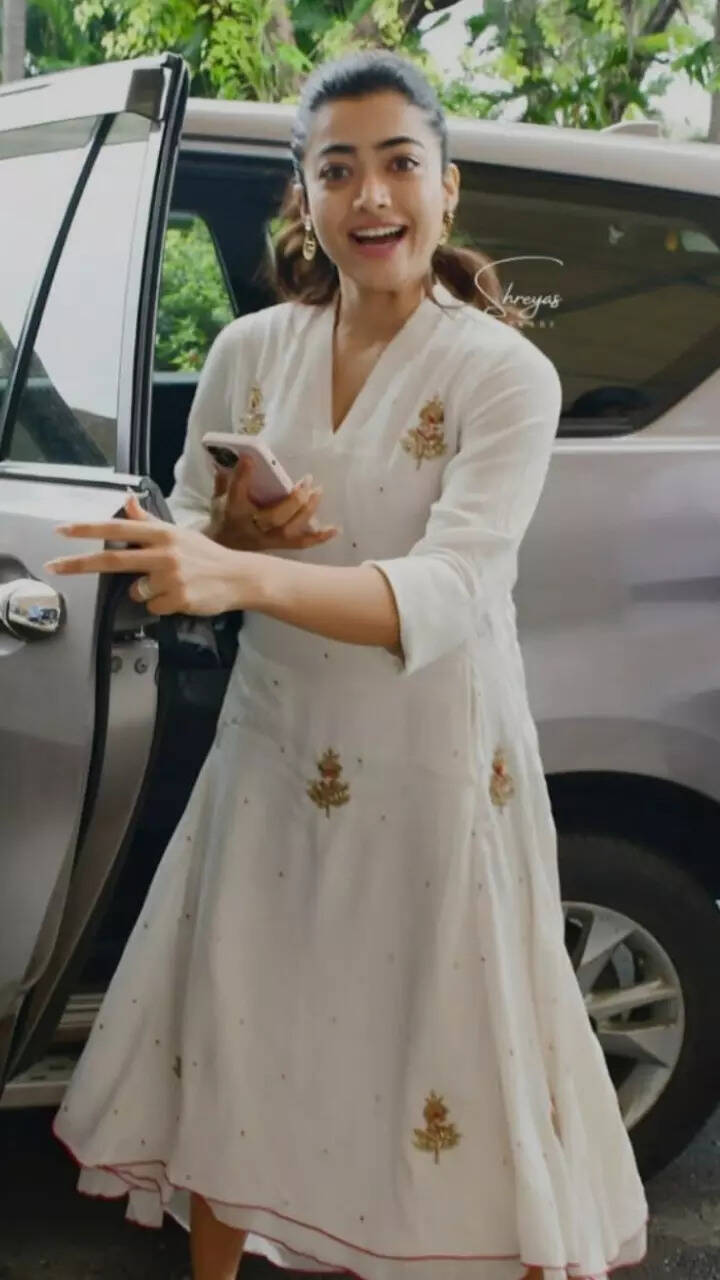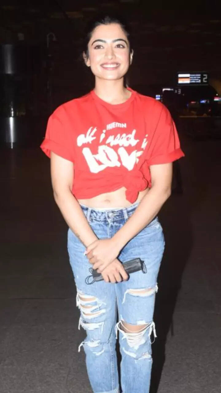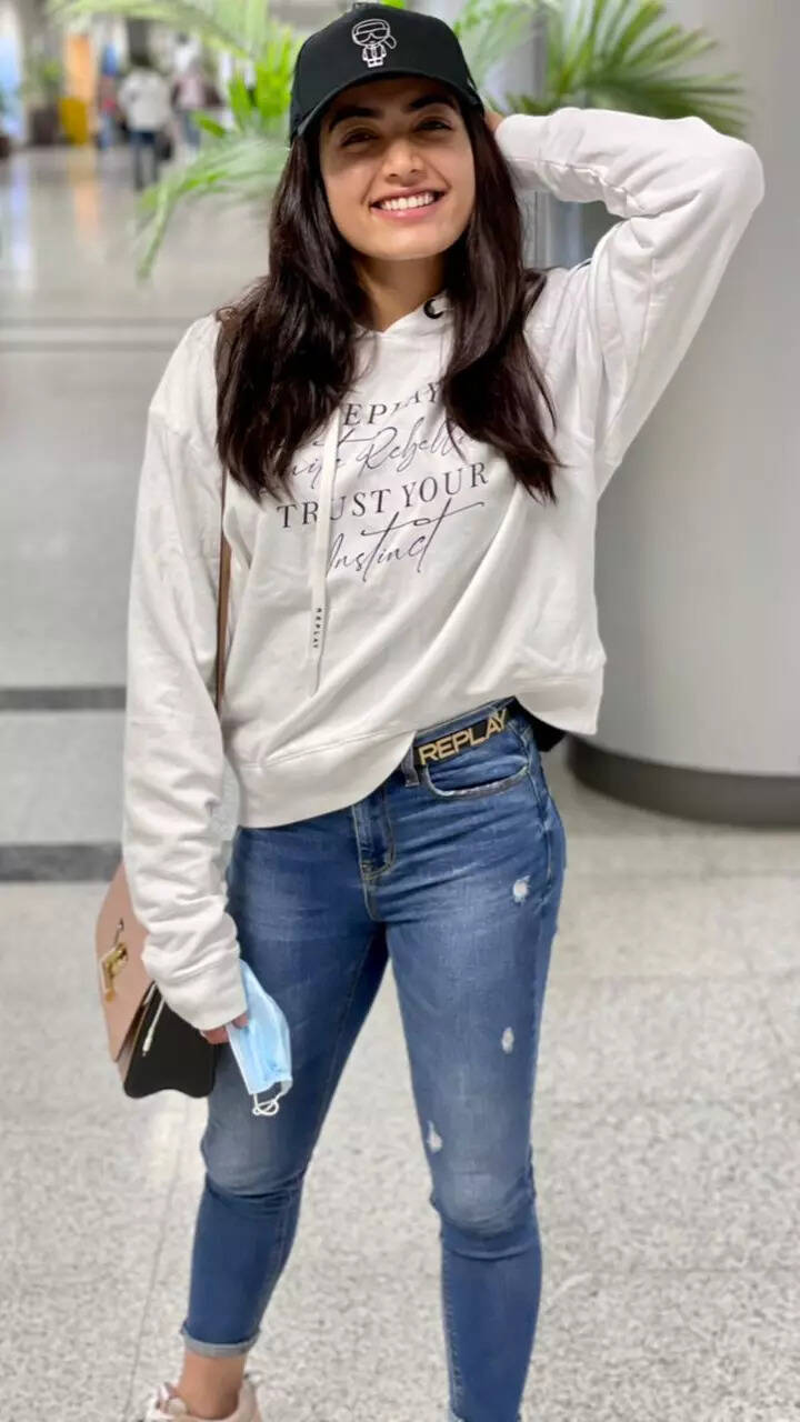 Rashmika’s white hoodie and blue ripped jeans brought a quirky cool vibe.