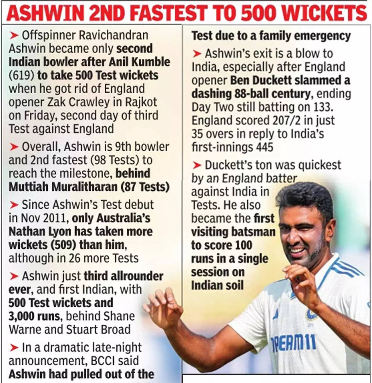 RAJKOT: Throwing rich accolades on Ravichandran Ashwin, who scaled Mt 500 at the Niranjan Shah Stadium, former England off-spinner Graeme Swann, here as a commentator for the last three Tests of the India-England series, said that Ashwin "is a student of the game… like a professor of spin bowling."