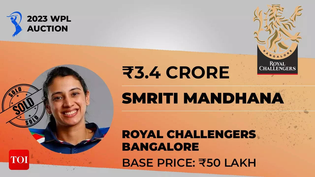 NEW DELHI: Star India opener Smriti Mandhana raked in the moolah as she was picked up by Royal Challengers Bangalore for a whopping Rs 3.40 crore at the first ever Women's Premier League auction in Mumbai on Monday.